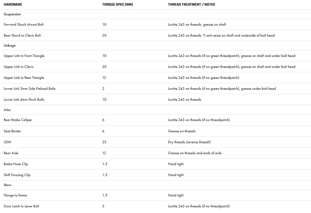 | Recommended Seatpost Drop | 125 | 160 | 185 | 213 | 213 | |